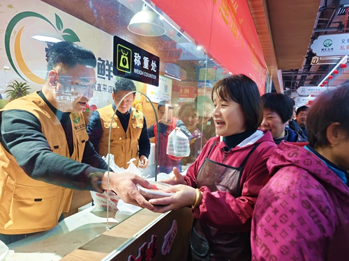 经营户们在忙碌的间隙驻足品尝,感受来自市场的诚挚关怀;消费者们接过这份意外的节日心意,惊喜之情溢于言表;市场保安、保洁等一线工作人员也在这份暖意中倍感温暖。短短时间内,一千余份饱含情意的腊八粥便全部发放完毕。通过一粥一饭的温暖互动,市场进一步拉进了与市场参与者的距离,让传统民俗在当代商业环境中焕发出新的情感价值。(农批市场 周晓樱)