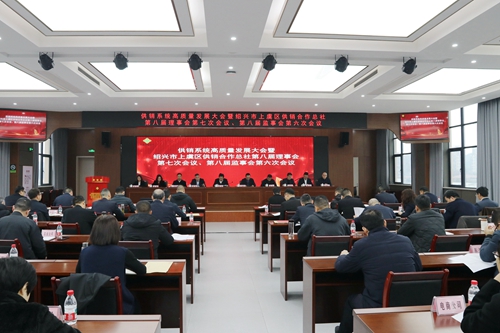 3月3日上午,供销系统高质量发展大会暨绍兴市上虞区供销合作总社第八届理事会第七次会议、第八届监事会第六次会议召开,动员系统上下坚定信心、干字当头、锐意进取,奋力谱写上虞供销合作事业高质量发展新篇章,为全区锚定“双挺进”、力拼“双上游”贡献供销力量。区社党委书记、理事会主任,大通控股集团董事长胡升代表上虞区供销合作总社第八届理事会作大会工作报告。区社党委副书记、理事会副主任王迪军主持。